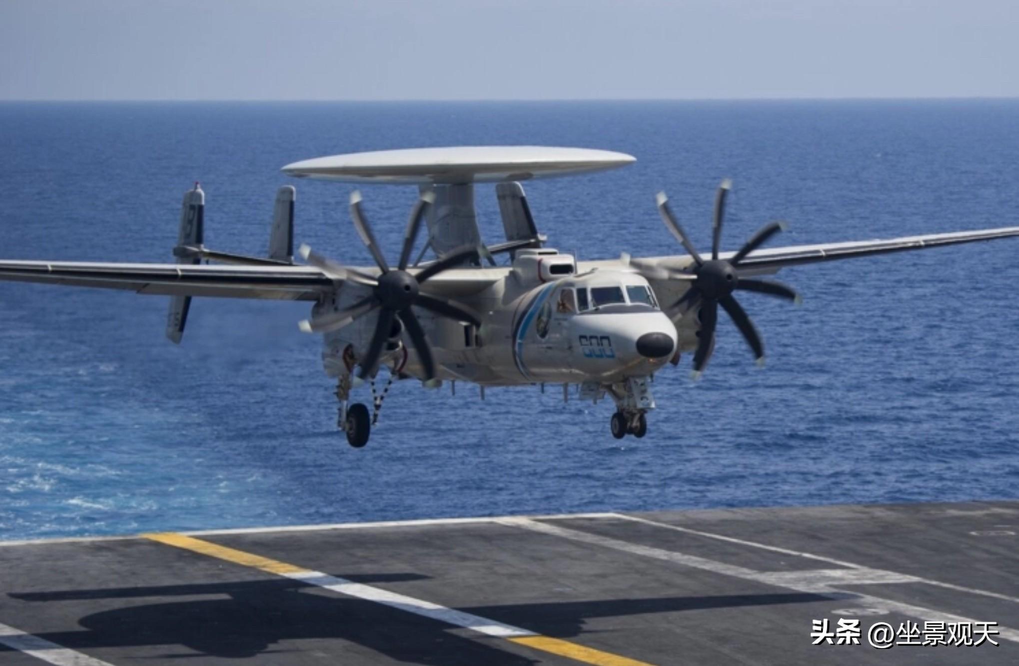 美國航母上搭載的E-2D“鷹眼”固定翼預警機,其最大探測距離可達500公里以上;
