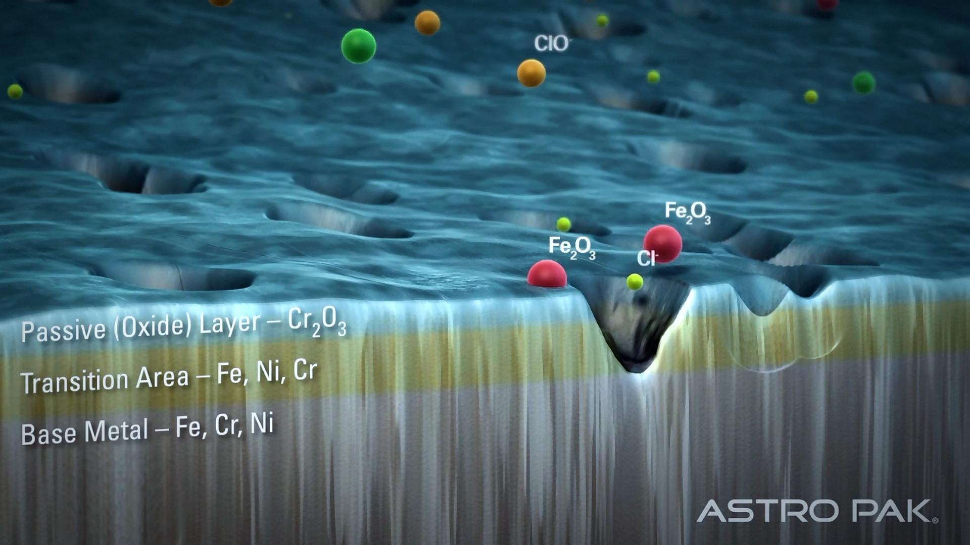 這其中的罪魁禍首就是氯離子,如果氯離子濃度過高,同時還有硫酸根離子的話,就可能會導致鉻、鎳溶解,破壞鈍化膜,失去抗腐蝕性能。氯離子濃度達到一定程度,不鏽鋼甚至可能發生晶間腐蝕、點蝕、孔蝕等嚴重腐蝕現象,當然,這可能需要浸泡在海水中才會發生。