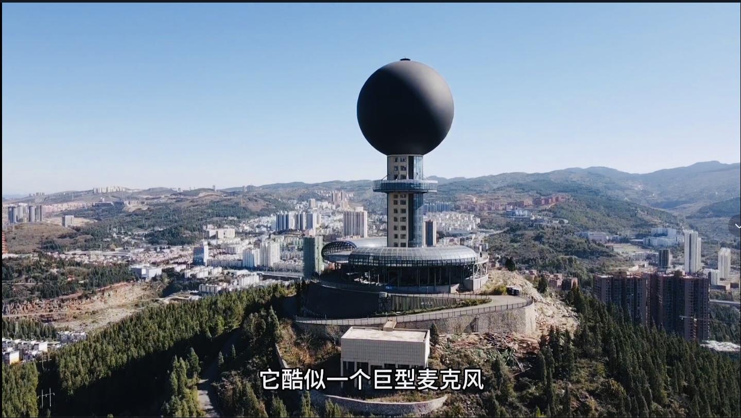 直徑40米,佔地面積約1000平方米,白天它如同豎立在月亮山的K歌麥克風,