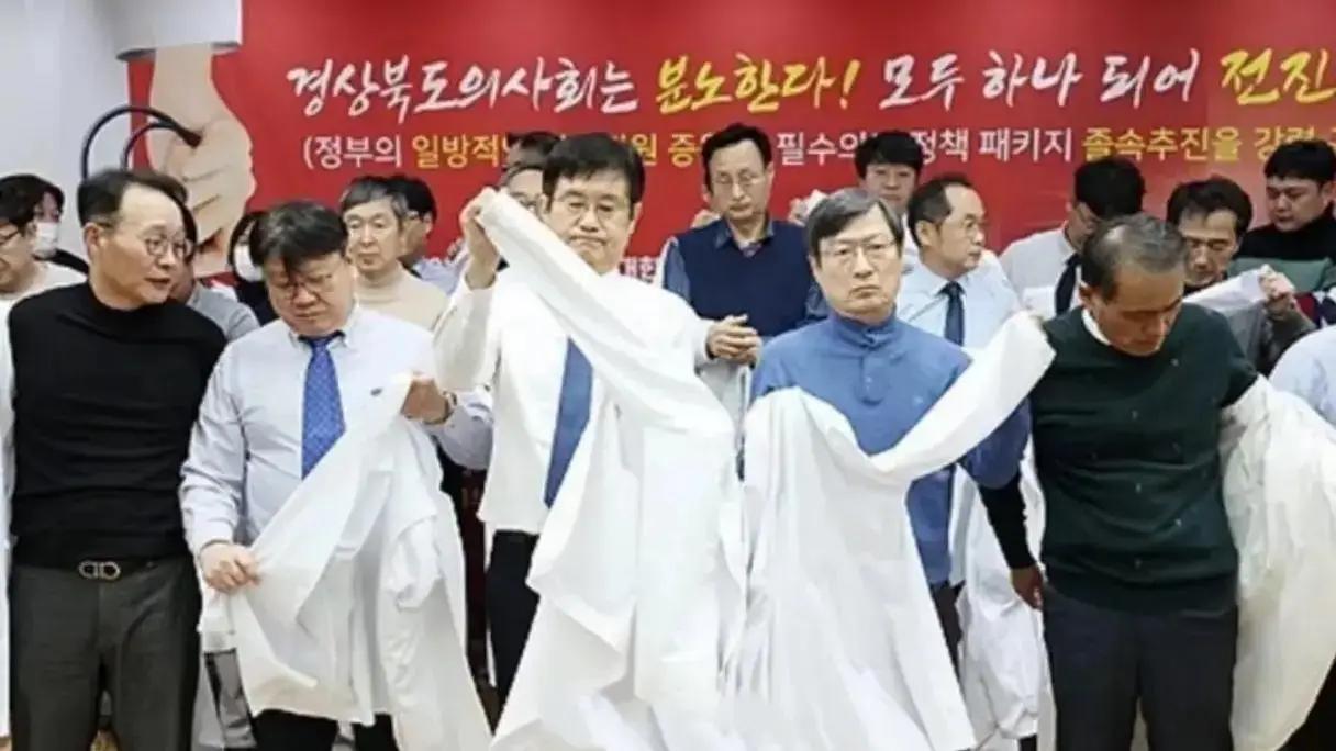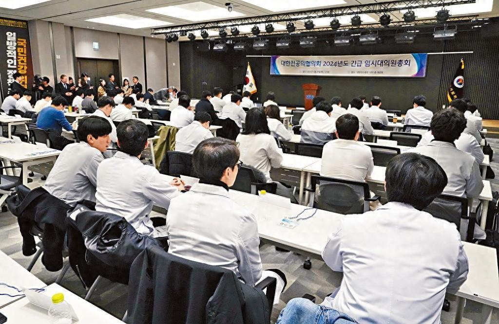 韓國執政黨同意,在野黨同意,民衆也鼎力支持。按理說沒啥阻力啊,但是不出意外的話,就要意外了,韓國醫學界不樂意了,物以稀爲貴,懂不懂?擴招之後醫生變多了,分蛋糕的人多,哪能忍。於是,韓國醫學協會召開了一次緊急代表會議,宣佈要全面鬥爭,說白了就是,我過了河,就把過河的橋給拆了,嘿嘿!(配:驚不驚喜,意不意外?)