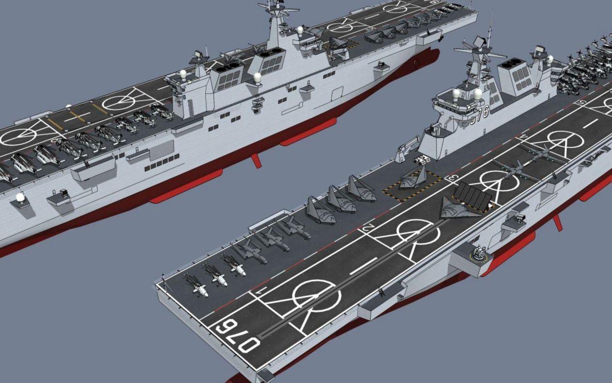 再有比075還要更上層樓的076兩棲攻擊艦,也在緊鑼密鼓的建造中,據悉這型軍艦更加先進,戰力更爲可觀,安裝和航母一個水平的電磁彈射軌道,輔助新型艦載戰機起飛作戰,增加作戰反應能力,快速迎敵的靈活機動作戰實力,讓海上的戰術執行,高效迅捷威力可怕,成爲打擊敵人的海上利器。