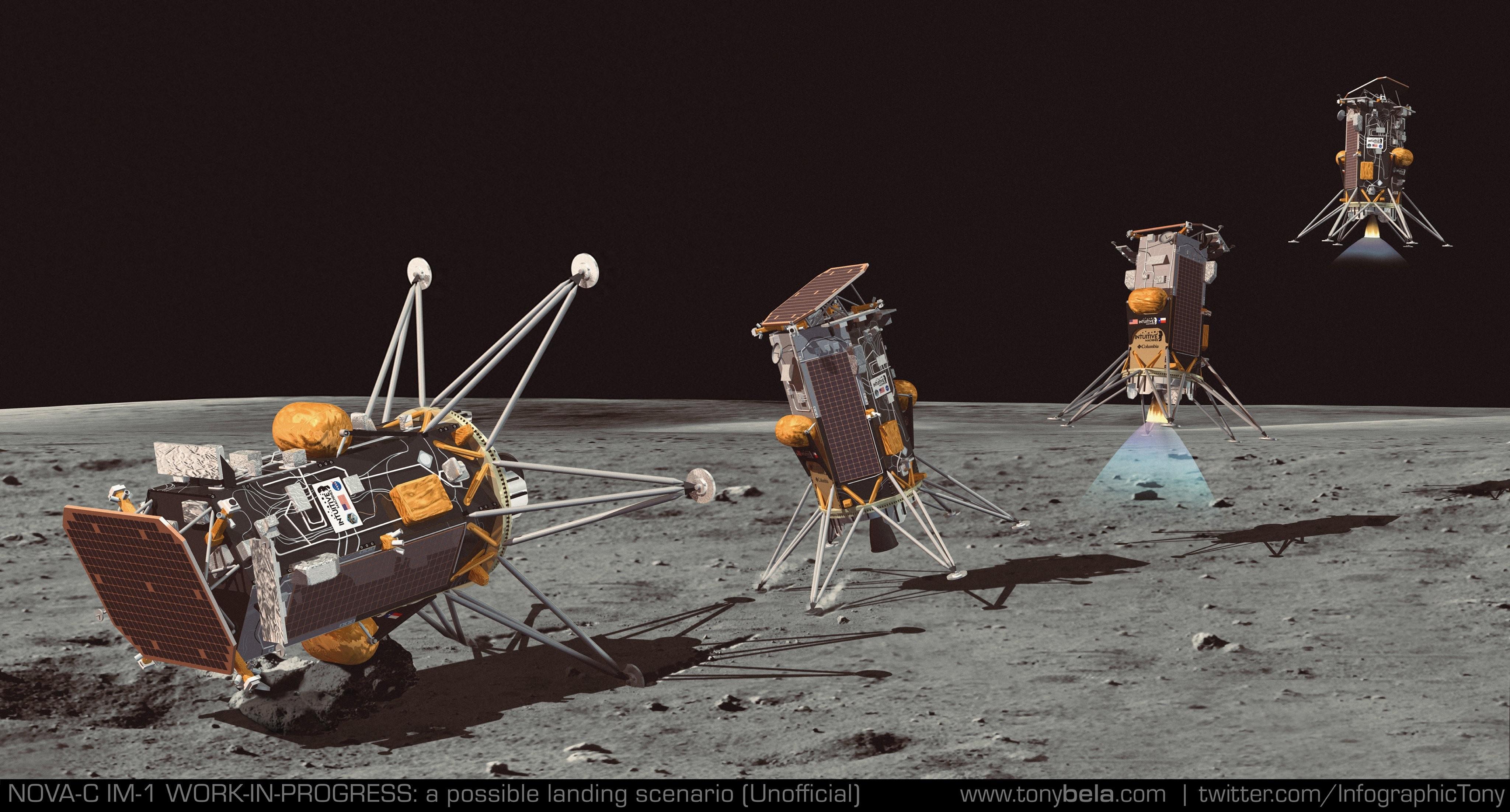 在下降階段呢,奧德修斯的着陸速度又太快了,一條着陸腿可能折了,然後就側翻了。