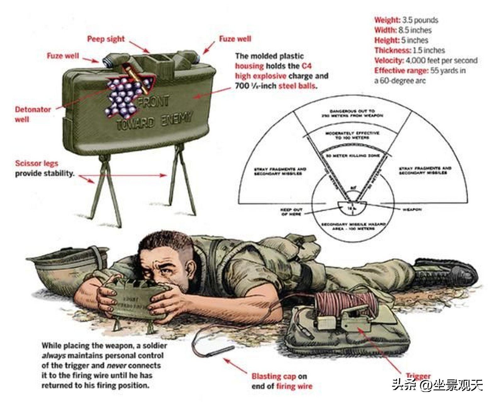 根據美國軍方的實際測試,在沒有遮擋物的情況下,克萊默地雷的致死距離高達50米,100米內的敵人都有重傷的風險。