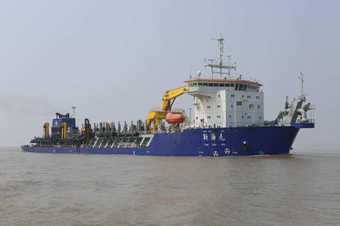 但是咱們只用10個月,就從設計到建造,將一條貨船改造成了耙吸挖泥船,它就是“新海象號”,它也是我國當時最大的耙吸挖泥船,爲長江口深水航道提供了裝備保證。在它的基礎上,咱們又研發設計了 13500方耙吸挖泥船“新海虎”,這個船就不是貨船改裝的,是國內自主開發設計、建造、關鍵疏浚配套設備國內自主研製的模式,被譽爲“神州第一挖”,開啓了國輪國造的先河。