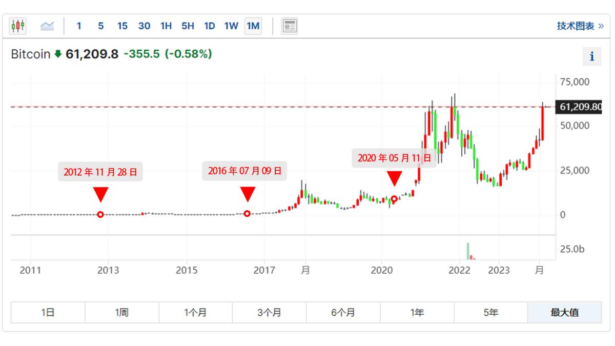 今天是 2024 年 3 月 1 日,在全球最大的比特幣交易所 Coinbase 上,每個比特幣的價格是 6.3 萬美元左右,不出意外的話,我們很快可以一起見證比特幣的歷史,它的價格會再次創下歷史新高,最近的一次記錄是在 2021 年 4 月創下的約 6.49 萬美元每個。
