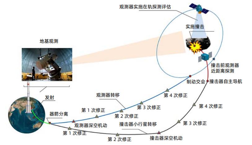 圖9 我國首次小行星防禦任務示意圖(圖片來源:《調皮的小行星》)