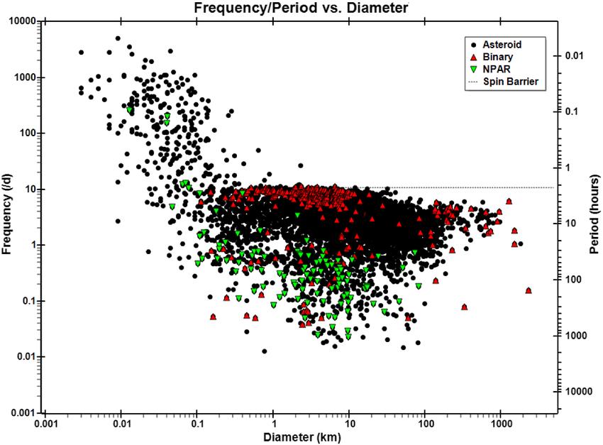 圖8 小行星的自轉“禁區”(圖片來源:The Astronomy and Astrophysics Review)