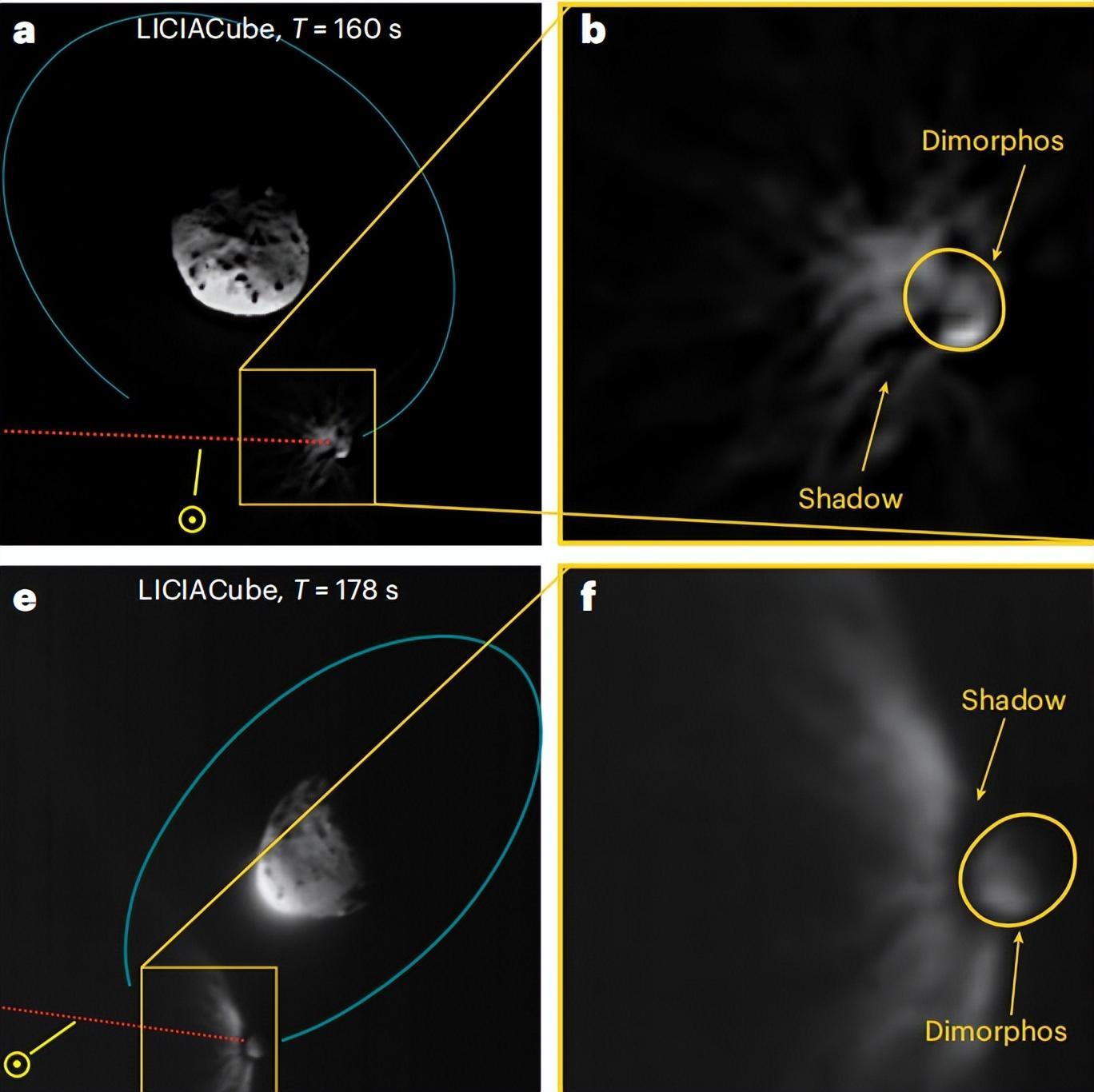 此前,科學家已經通過觀測試驗數據確定了動量傳遞因子的上限和下限。LICIACube立方星在撞擊後的29-320秒內捕捉到了濺射物的圖像,這爲研究團隊提供了濺射物相對於小行星撞擊點的發散錐角的寶貴數據。