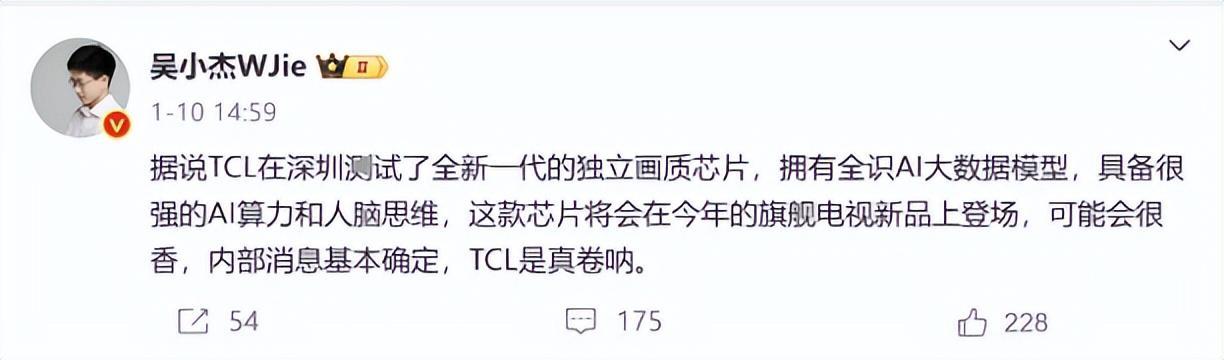 此外,據行業知情人士吳小杰此前爆料,TCL測試了全新一代的獨立畫質芯片,其擁有時下最先進的AI大數據模型,並很有可能在今年的新旗艦電視新品上搭載。