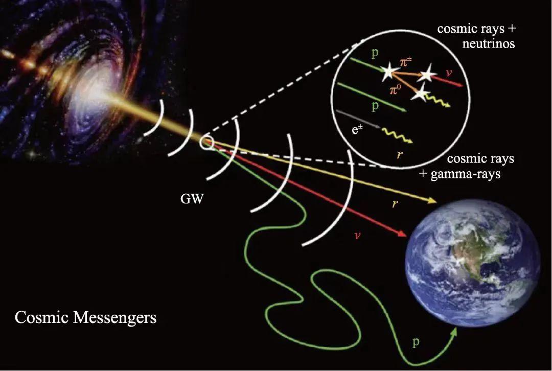宇宙線中約90%是質子,就是H2O裏面那個氫原子核。由於帶電粒子在星際磁場中會發生偏轉,所以我們即使探測到了這些粒子的方向,也無法判定它自何方來。但天無絕人之路,這些帶電粒子與天體源附近的粒子碰上,會留下蹤跡,產生一些次級粒子,如光子和中微子,它們不帶電,那我們觀測到這些粒子就能追蹤溯源,就能摸到這些宇宙線的“老窩”了。