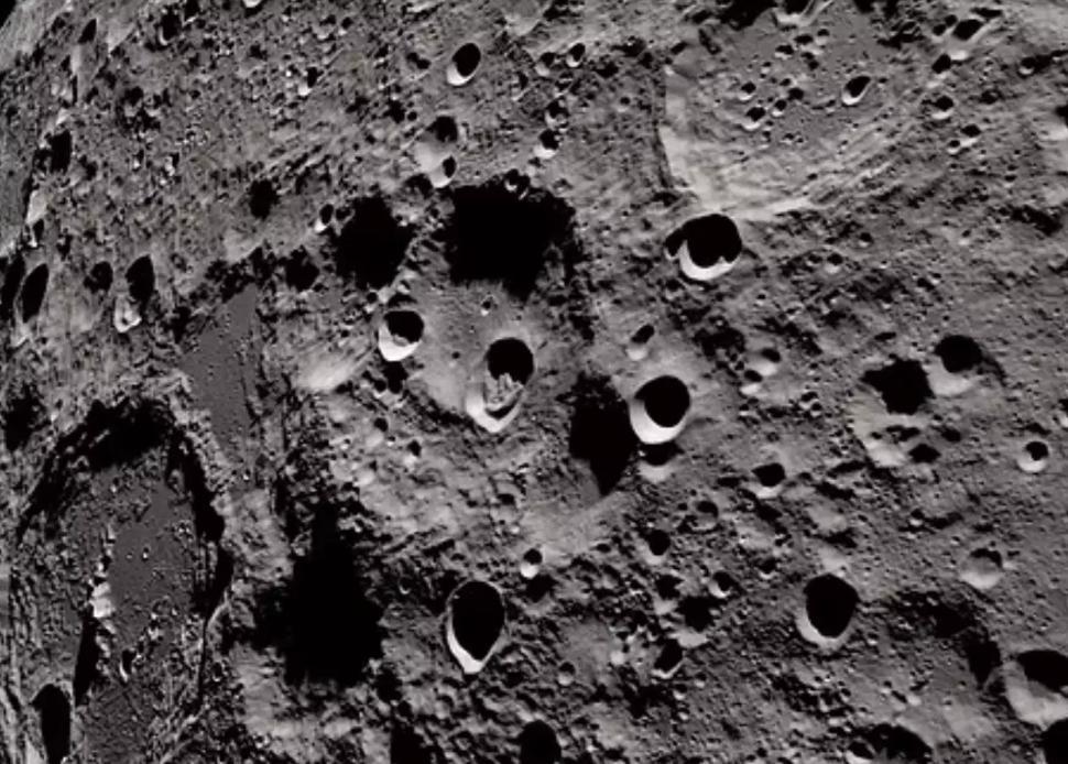 在其背面,更多的是凹凸不平的山地和峽谷,這需要地面指揮中心對於飛行探測器的精準把控能力。