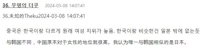 與韓國不同,中國原本對於女性的地位就很高。我認爲唯一與韓國相似的是日本。