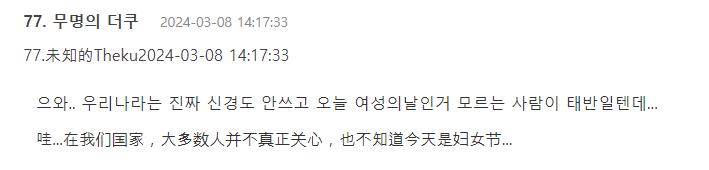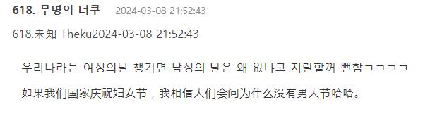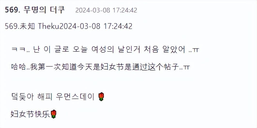 你猜怎麼着?韓國網民聽到這,都破防了。爲啥呢,因爲他們還是第一次聽說,有專門給女性過的節日。