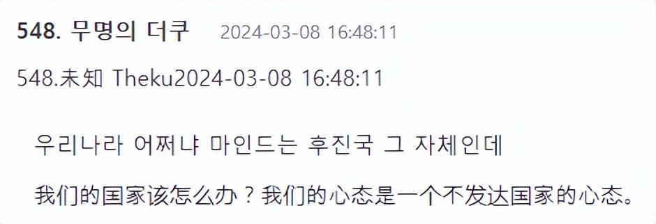 這個韓國人說,韓國人的心態是一個不發達國家的心態。