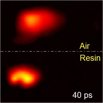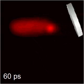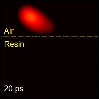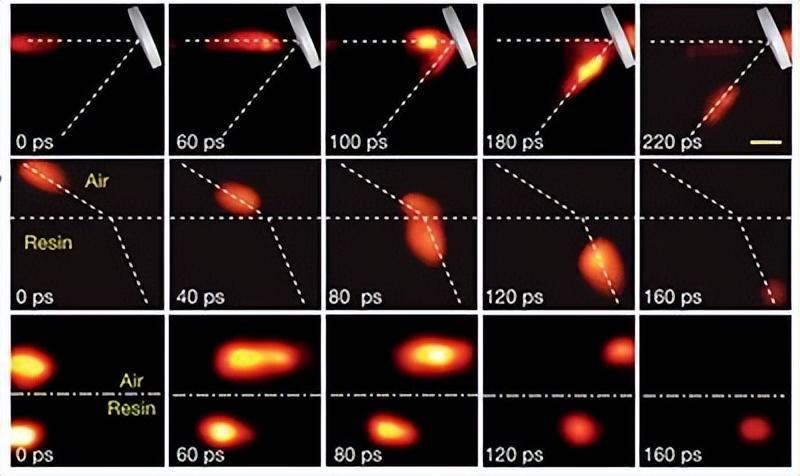 壓縮感知超快成像拍攝到的光的傳播、折射和反射過程(引自Gao, Liang, et al. Single-shot compressed ultrafast photography at one hundred billion frames per second. Nature 516.7529 (2014): 74-77.)