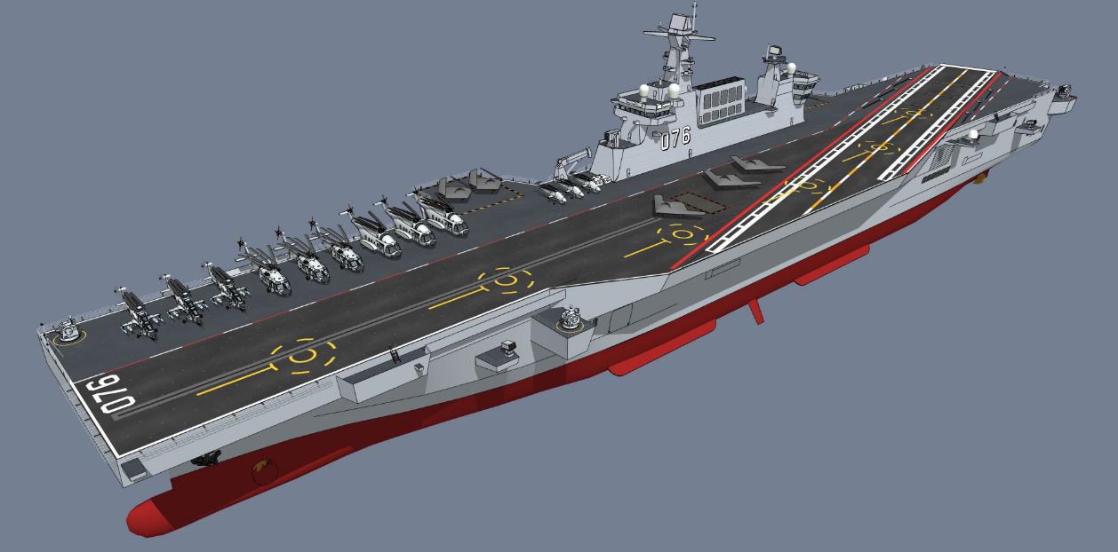 此前當075的四萬噸級排水量引發關注的時候,研發建造中的076兩棲攻擊艦的排水量會達到6萬噸級,這相當於快速增加航母的戰力,也是廣大軍迷極爲盼望的新型軍艦。將會安裝電磁彈射系統,成爲更加先進的輔助戰機起飛的軍艦。