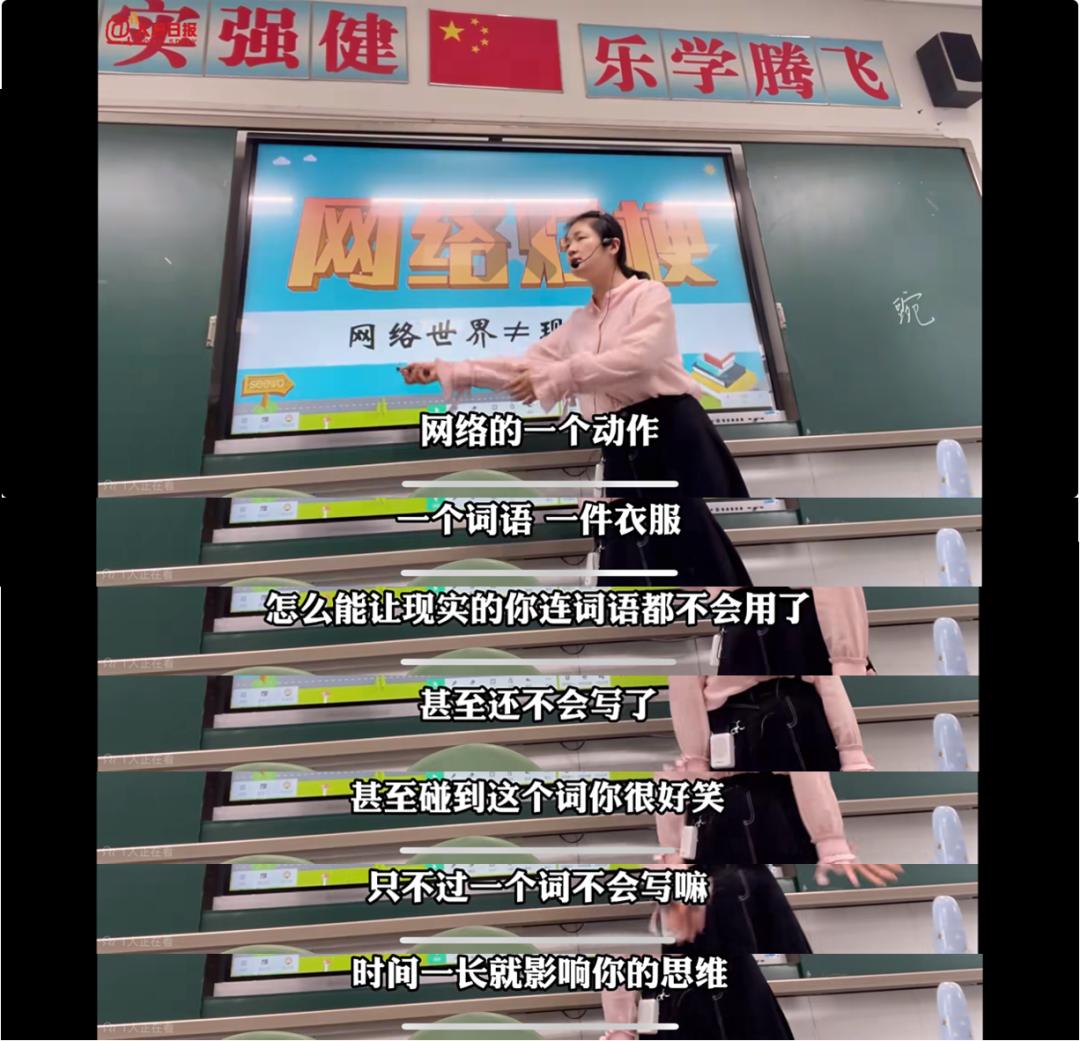 老師引導學生思考爛梗帶來的危害(圖片截取自網絡:B站UP主.很努力的班主任)