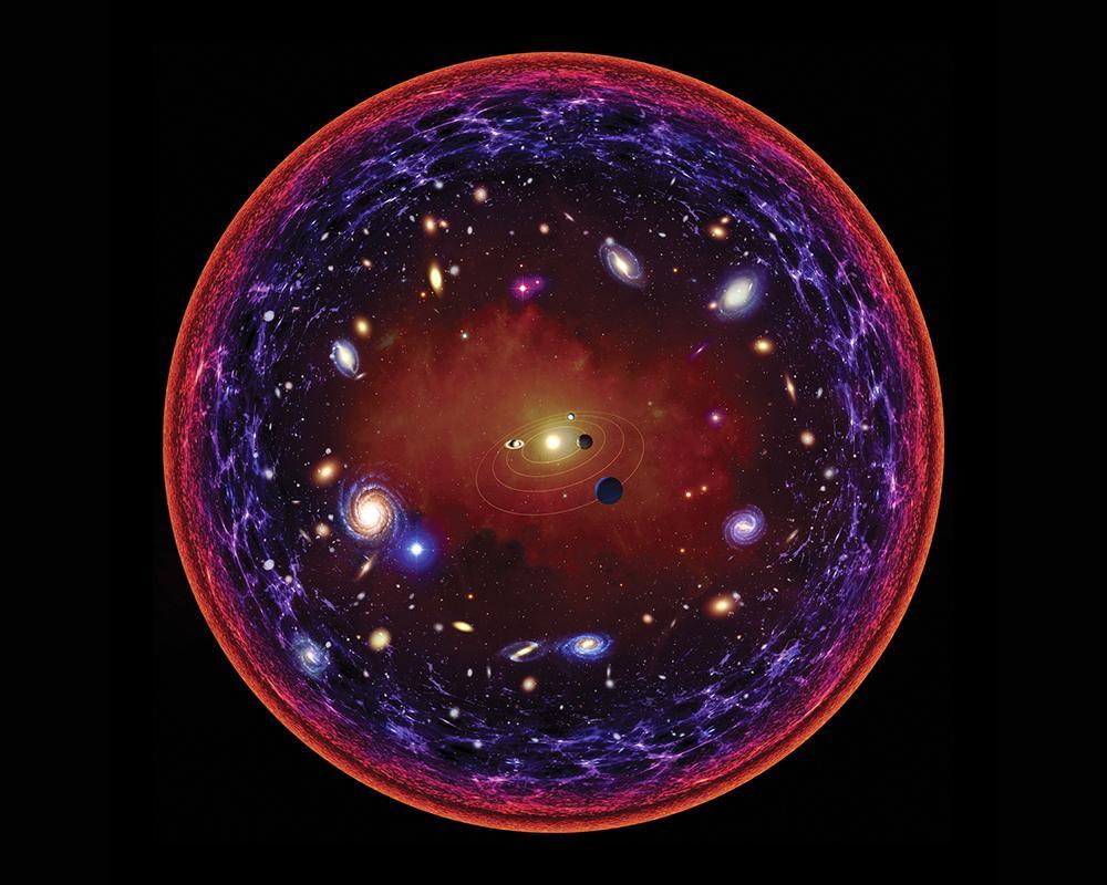 你看,我們現在所說的宇宙,指的是地球爲中心,半徑爲465億光年的球體範圍,這一空間也叫可觀測宇宙。這個半徑也叫粒子視界。粒子視界指的是宇宙誕生初的光線經過138億的飛行,再加速宇宙膨脹,所抵達的區域。