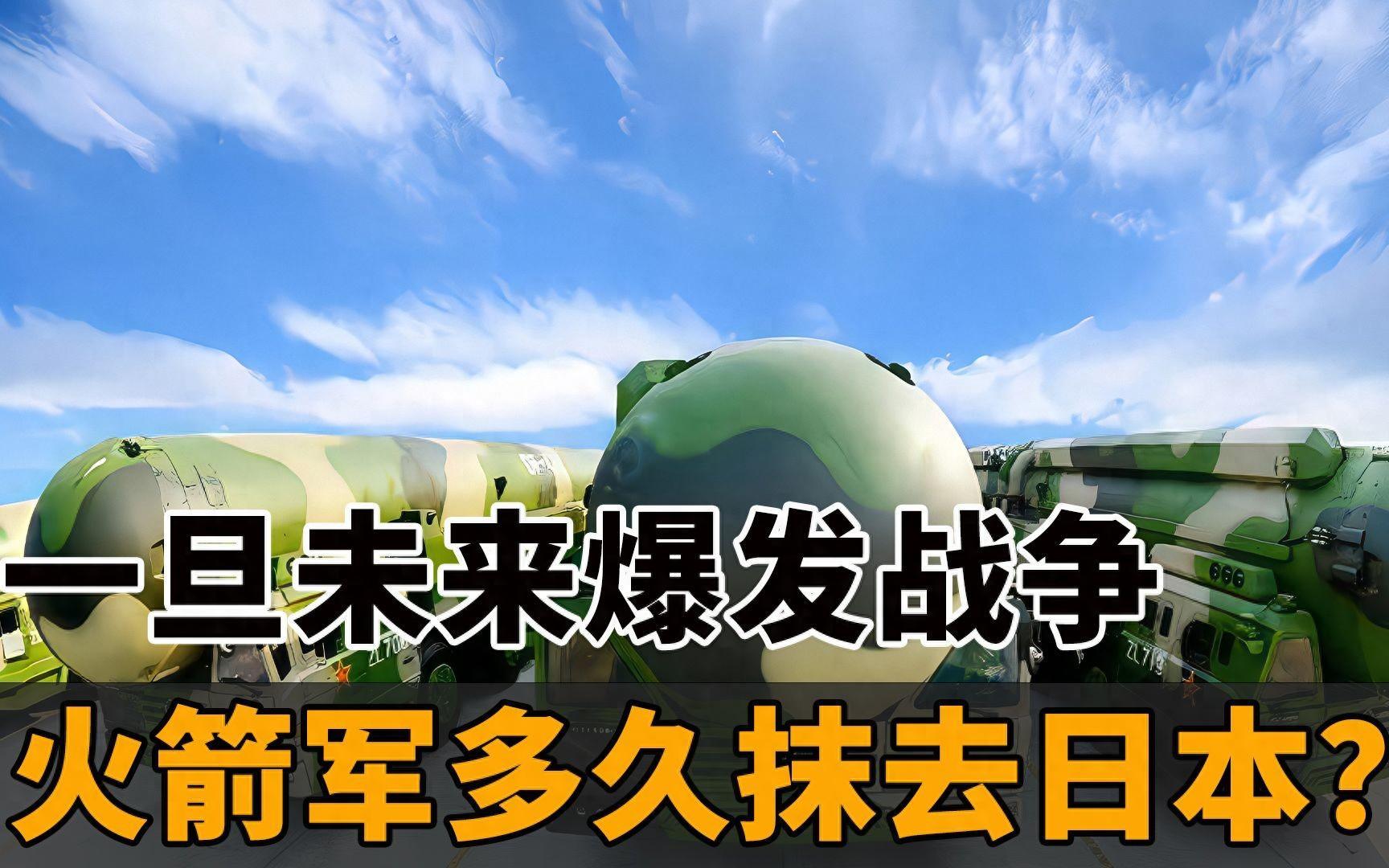 未來一旦爆發戰爭的時候,日本可能突然發動攻擊,想要趁其不備謀些利益,這種可能很大,我國火箭軍要爲保衛國家而戰,幹掉日本消滅敵人需要多久時間?