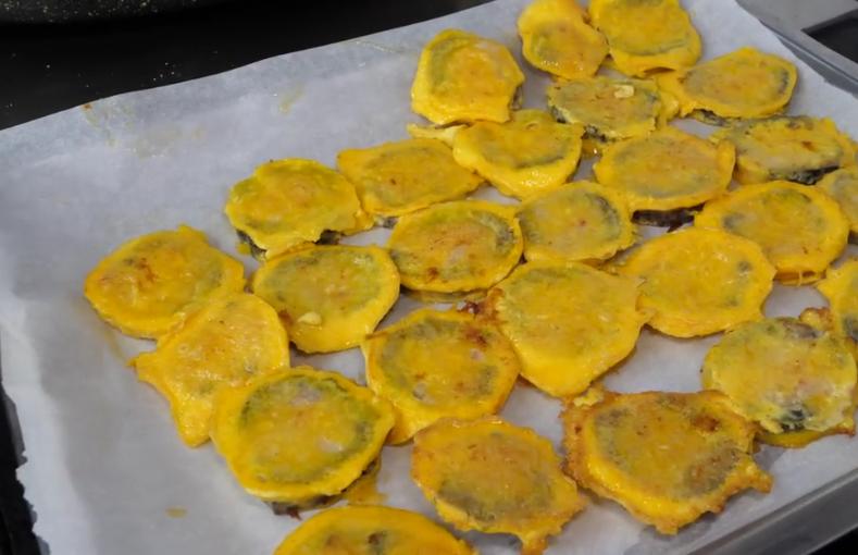 硬菜做完剩下海鮮,裹上雞蛋液開始香煎,鱈魚,蝦仁呈現金黃色看着明豔!
