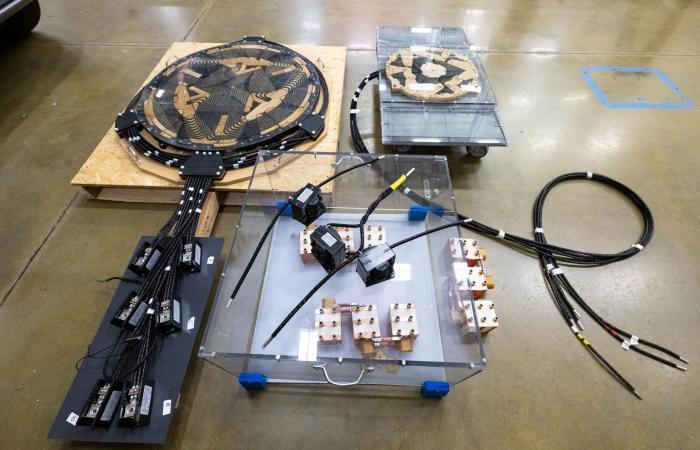 此後他們又更上一層樓,突破性地開發出了一種多相電磁耦合線圈,這種線圈又輕又小,只有14英寸,線圈相位繞組產生的旋轉磁場,可以極大地增強功率,是傳統線圈技術的8-10 倍,從而可以在極小的線圈裏實現極高的功率密度。