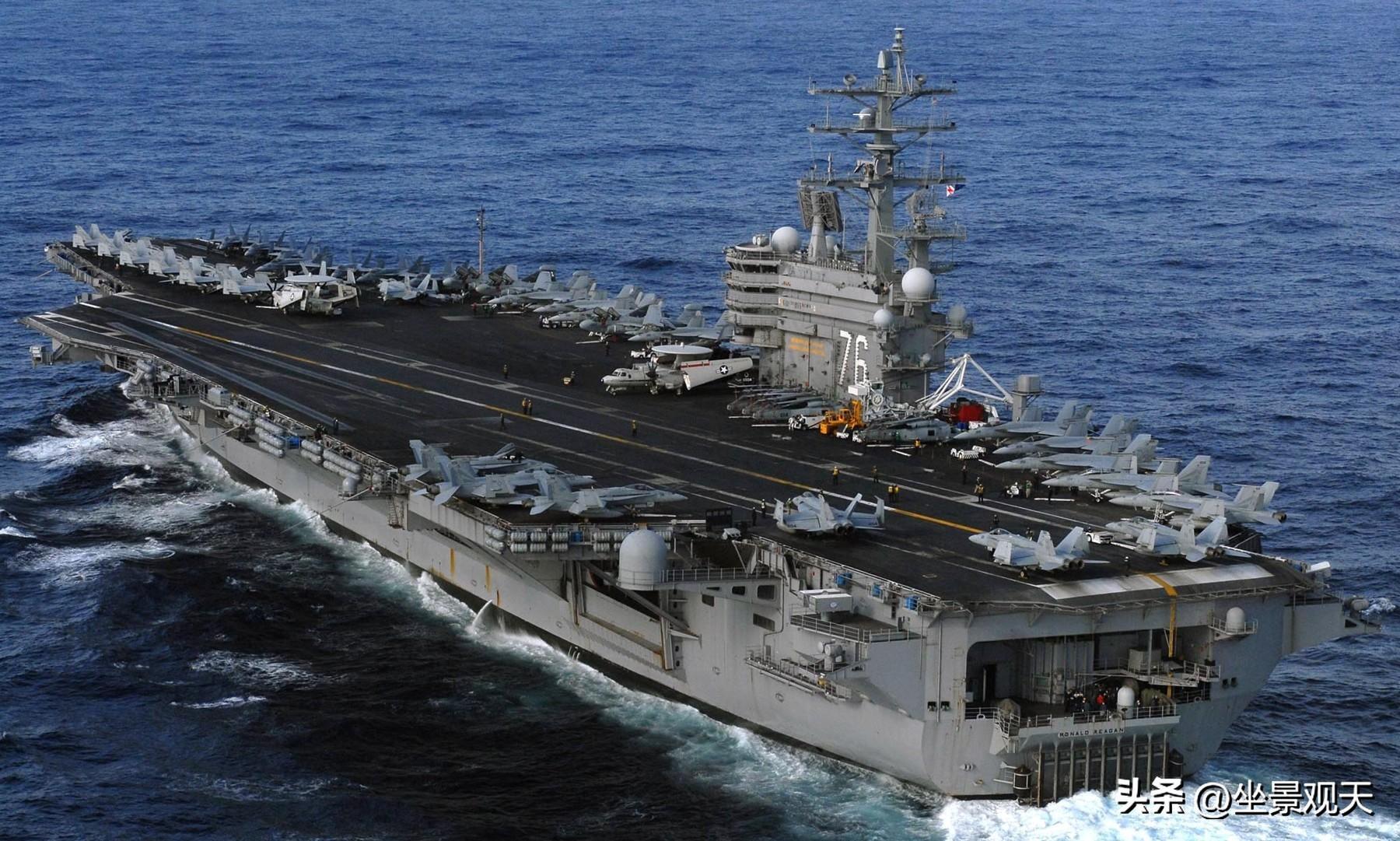 不得不說美國海軍里根加卡爾文森號的雙航母架勢還是相當駭人的,里根號是中國海軍的老熟人了,也是第七艦隊的核心作戰力量。