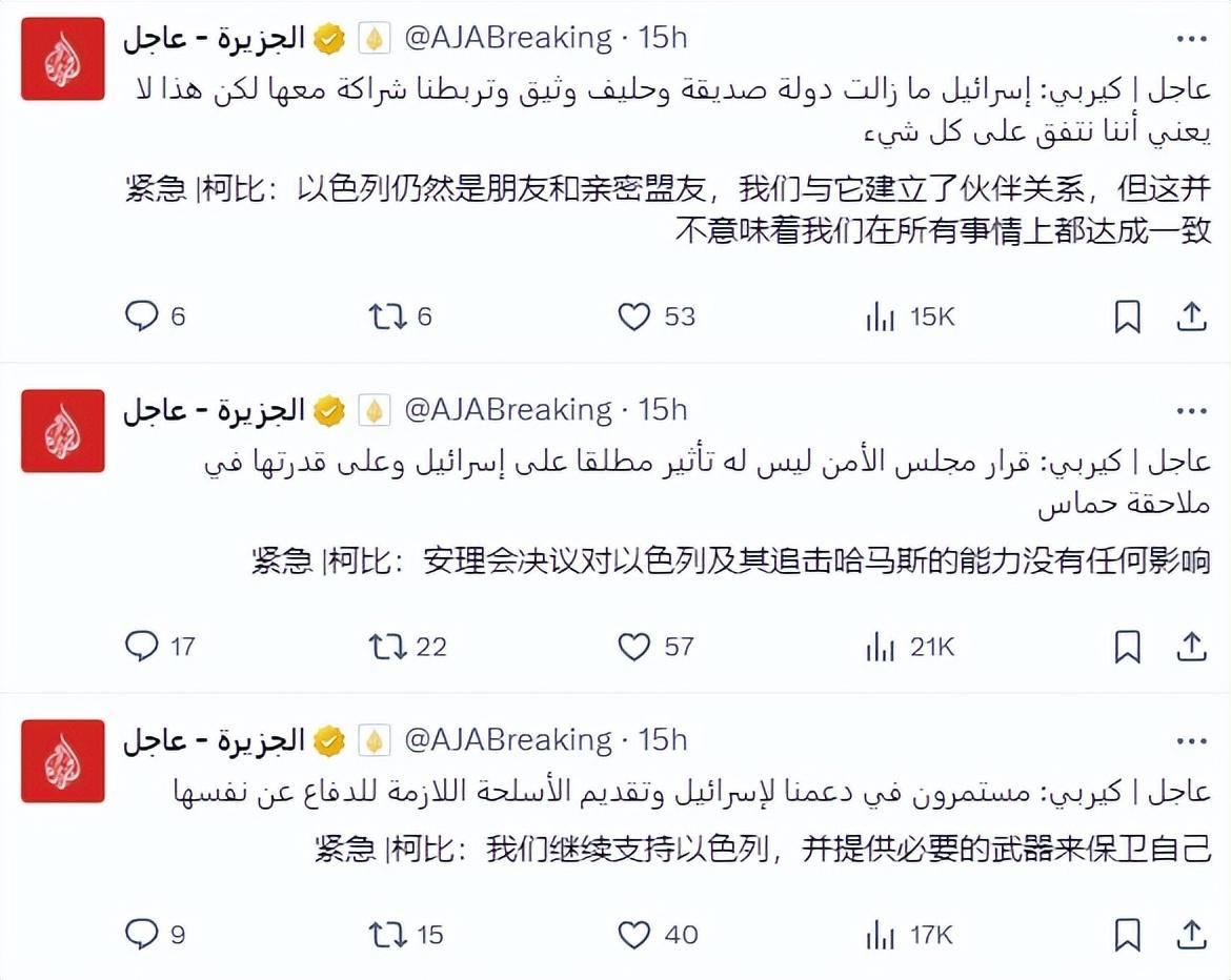 類似的提問,柯比也被問到了,他是這麼說的,這是一項不具約束力的決議,因此對以色列和以色列繼續追擊哈馬斯的能力沒有任何影響。