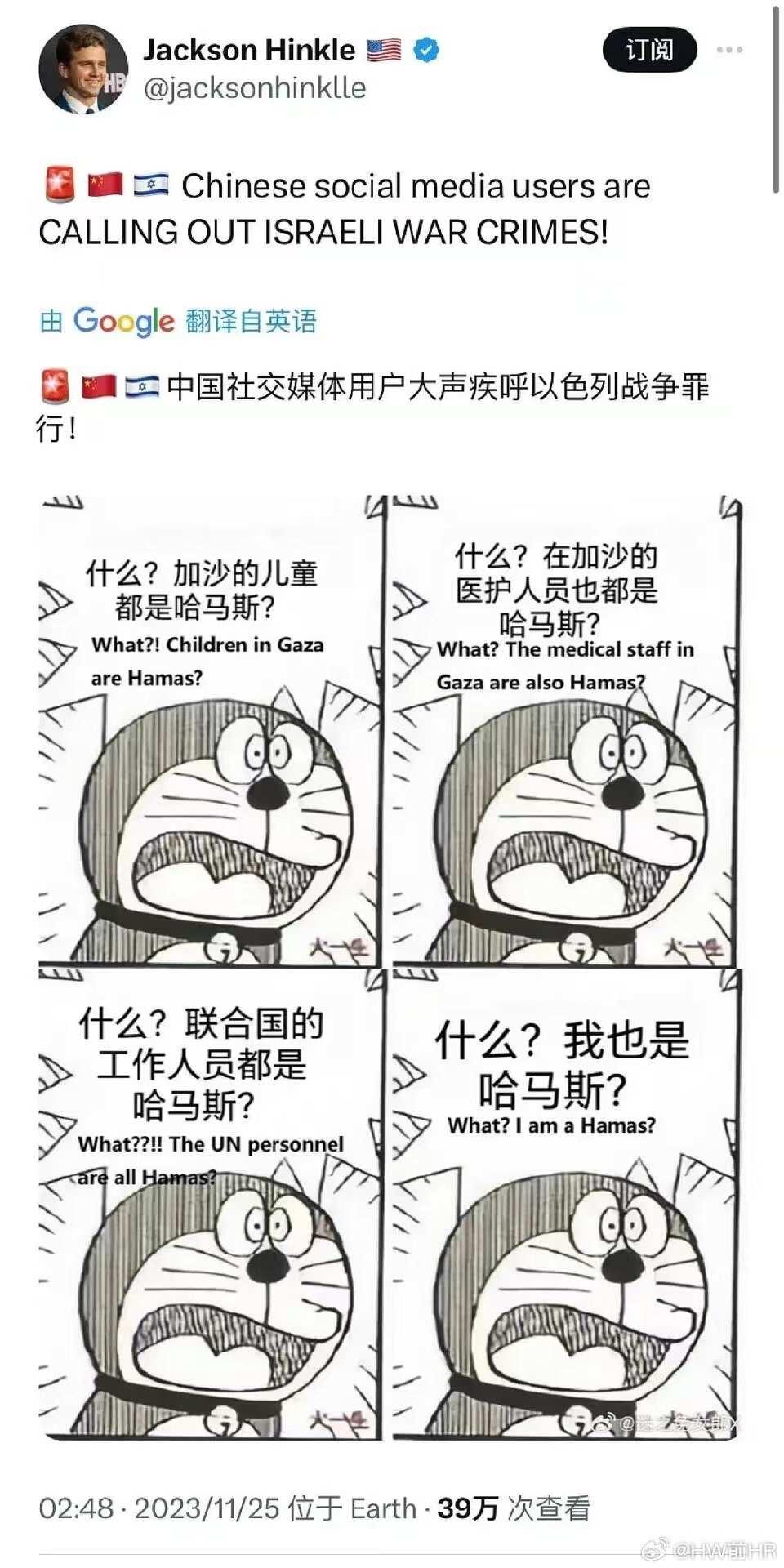 當然,按照以色列駐聯合國代表埃爾丹一貫的風格,在決議通過的那一刻,全球有良知的人都是哈馬斯。正如中國在外網的兩個流行的段子一樣。