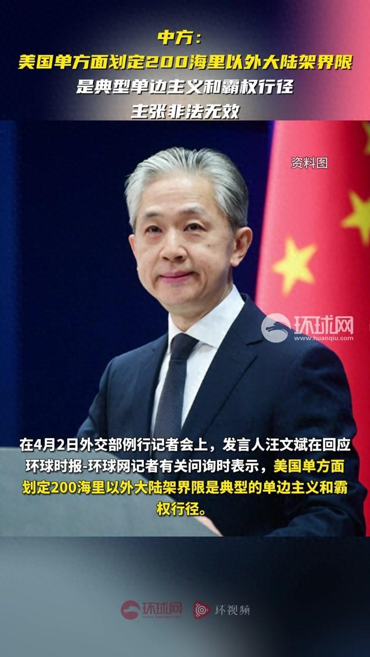 美單方面擴大陸架範圍,將無主資源佔爲己有,中方表示不承認