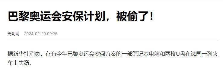 但是,但是,就在這個節骨眼上,法國媒體爆出來,一個裝有奧運會警方安保計劃的筆記本被偷了,一位工程師帶着它坐車,沒想到就遇到小偷了,只能說,不愧是你,“賊都”巴黎,你果然沒讓大家失望。