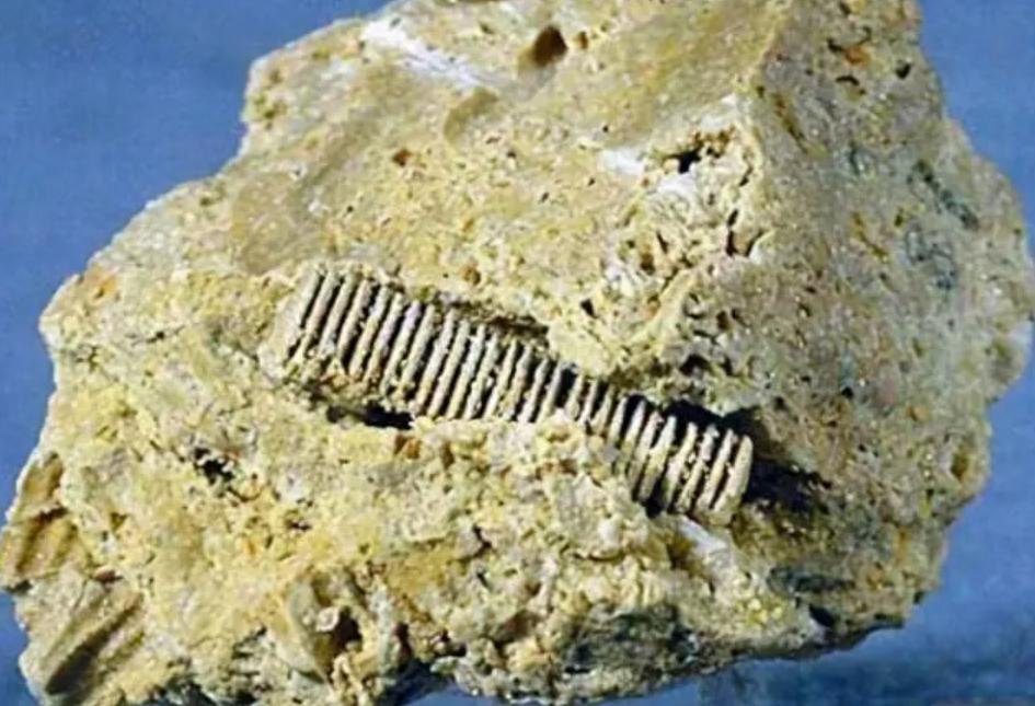 請看下邊這張圖片,石塊當中鑲嵌着類似於螺絲一樣的東西,這可能在大家看來是稀鬆平常的事情,畢竟現在奇形怪狀的螺絲隨處可見。但如果說它是3億年前的東西呢?