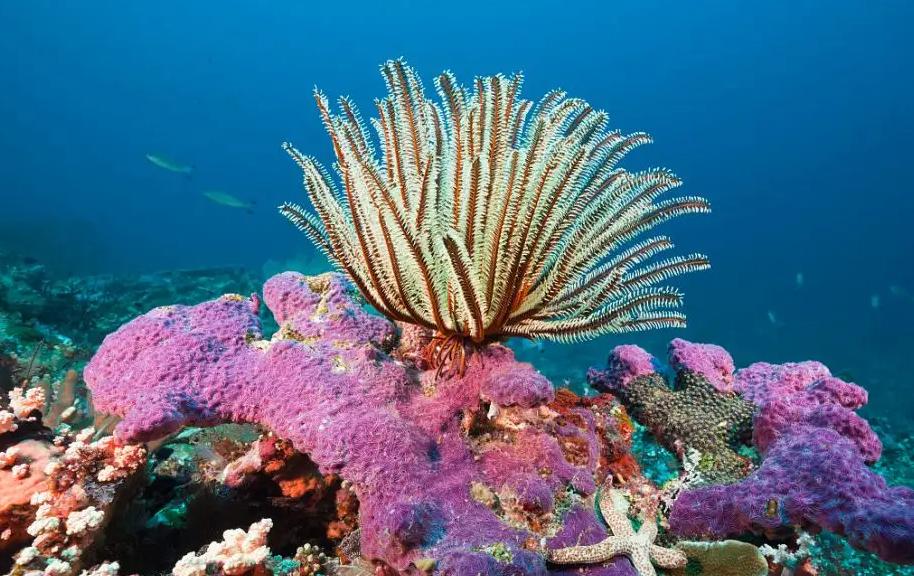 海百合是一種海洋類棘皮動物門,主要生活在熱帶和溫帶的海域,平時像植物一樣潛伏,同樣以小動物爲食。
