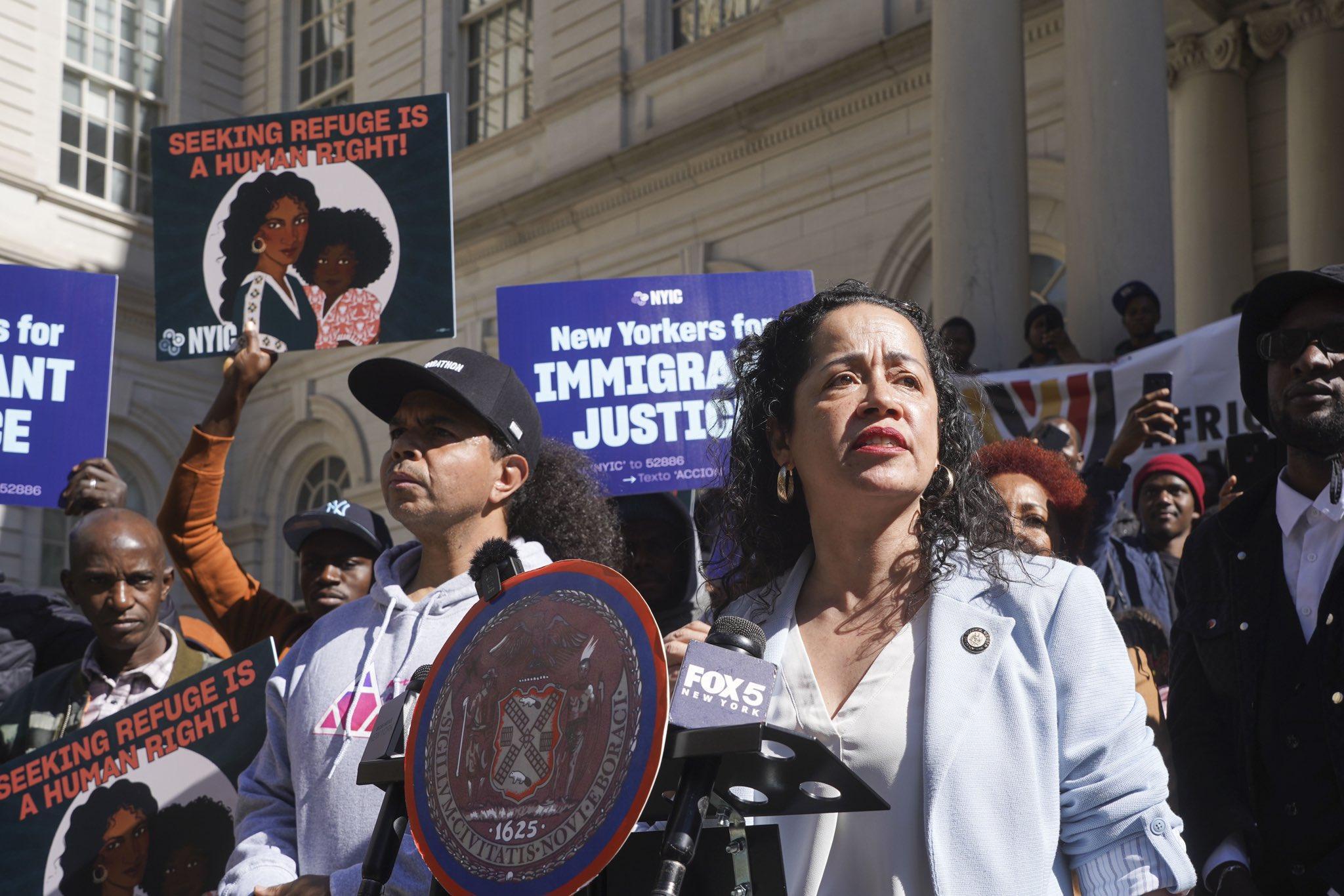 那他們爲啥要去紐約市政廳抗議呢,是因爲當天,紐約市議會舉行了一場監督聽證會,這個聽證會是希望聽取來自非洲國家的新移民,想聽聽他們在這座城市的經歷,瞭解政府可以如何幫助他們,解決語言障礙,以及健康和其他需求。
