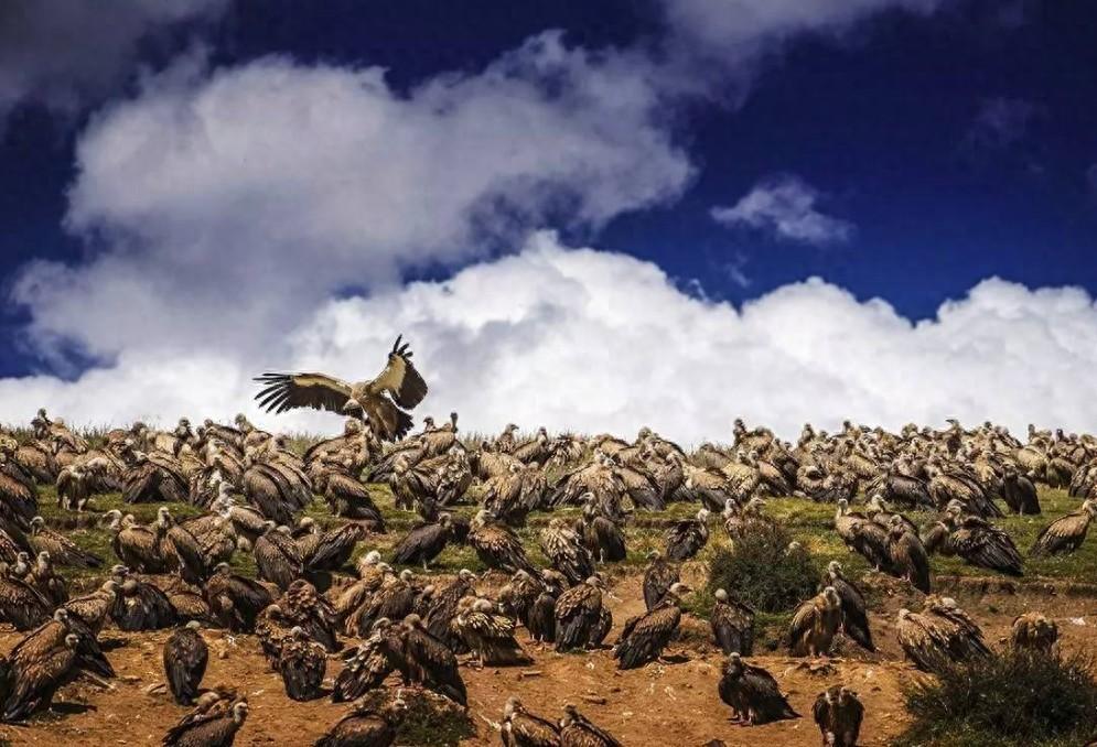 在藏族的喪葬當中,有一種名爲“天葬”,又被稱爲“鳥葬”的習俗,當人們死後,由專門的天葬師將屍體捲曲起來,放在山巔,由禿鷲啄食,這種鳥類也被藏族人稱爲“神鳥”。