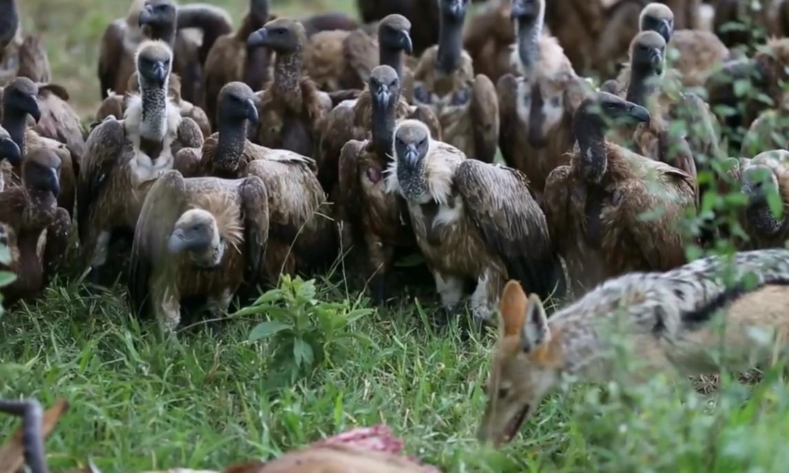 由於過程當中身體多個部位受傷,屍體保存度不是很高,濃郁的血腥味和刺激的場面引來了空中盤旋的禿鷲。