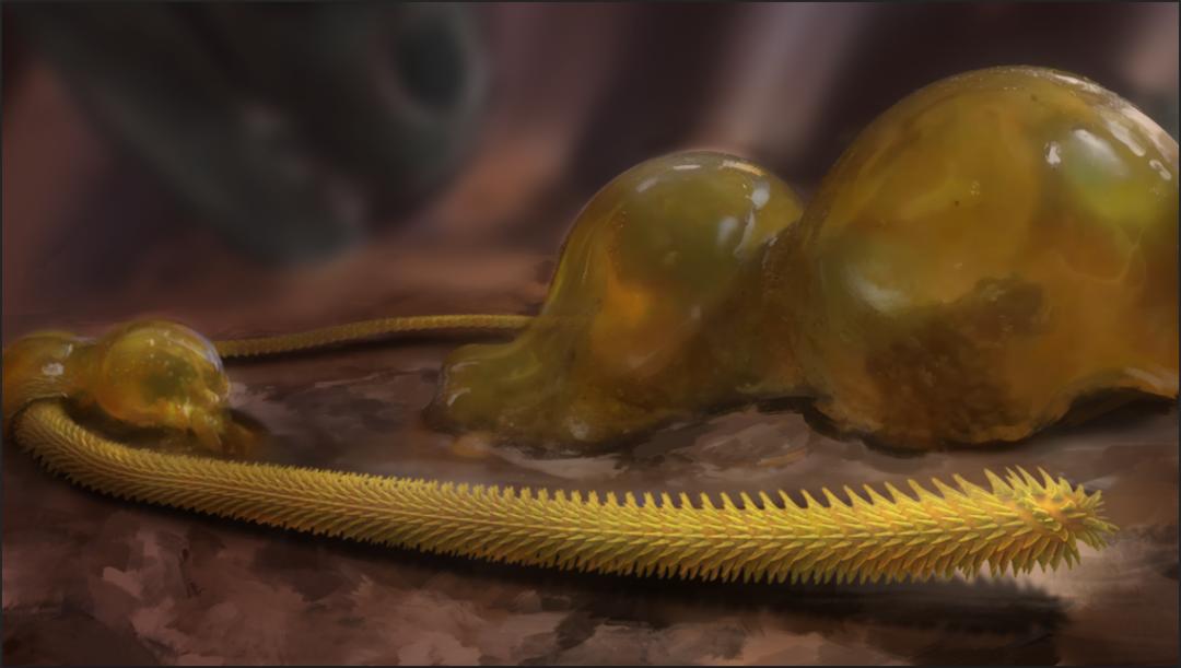 在琥珀中發現的寄生蟲大類中,線蟲,尤其是索線蟲佔據了重要地位。線蟲廣泛分佈於幾乎所有的表層環境中,是食物網的重要組成部分。而索線蟲是一類特殊的線蟲,寄生於各類無脊椎動物,如昆蟲、馬陸、蜘蛛、蝸牛和蚯蚓等體內。它們可以改變寄主的形態、生理特徵甚至操控寄主的行爲。