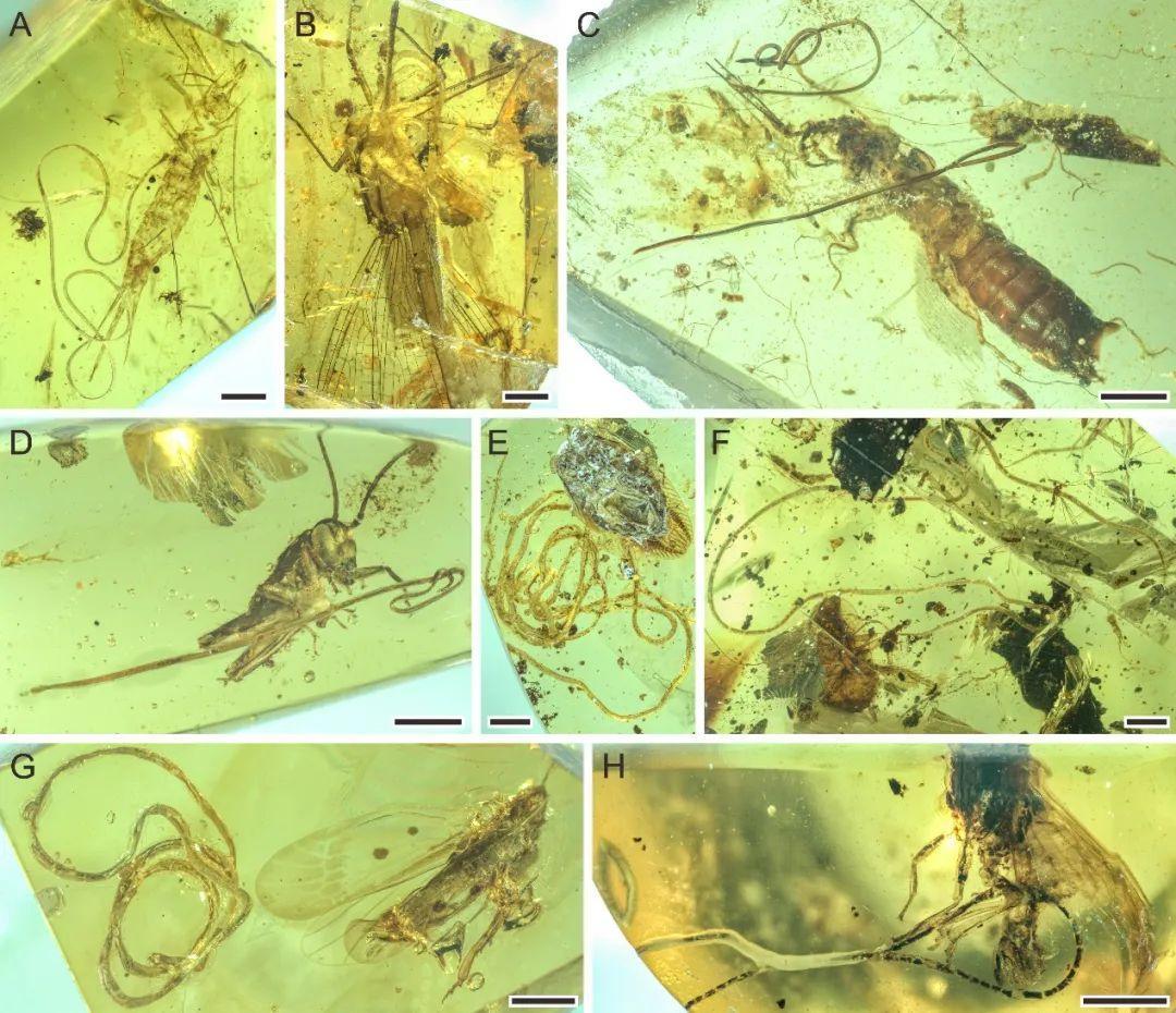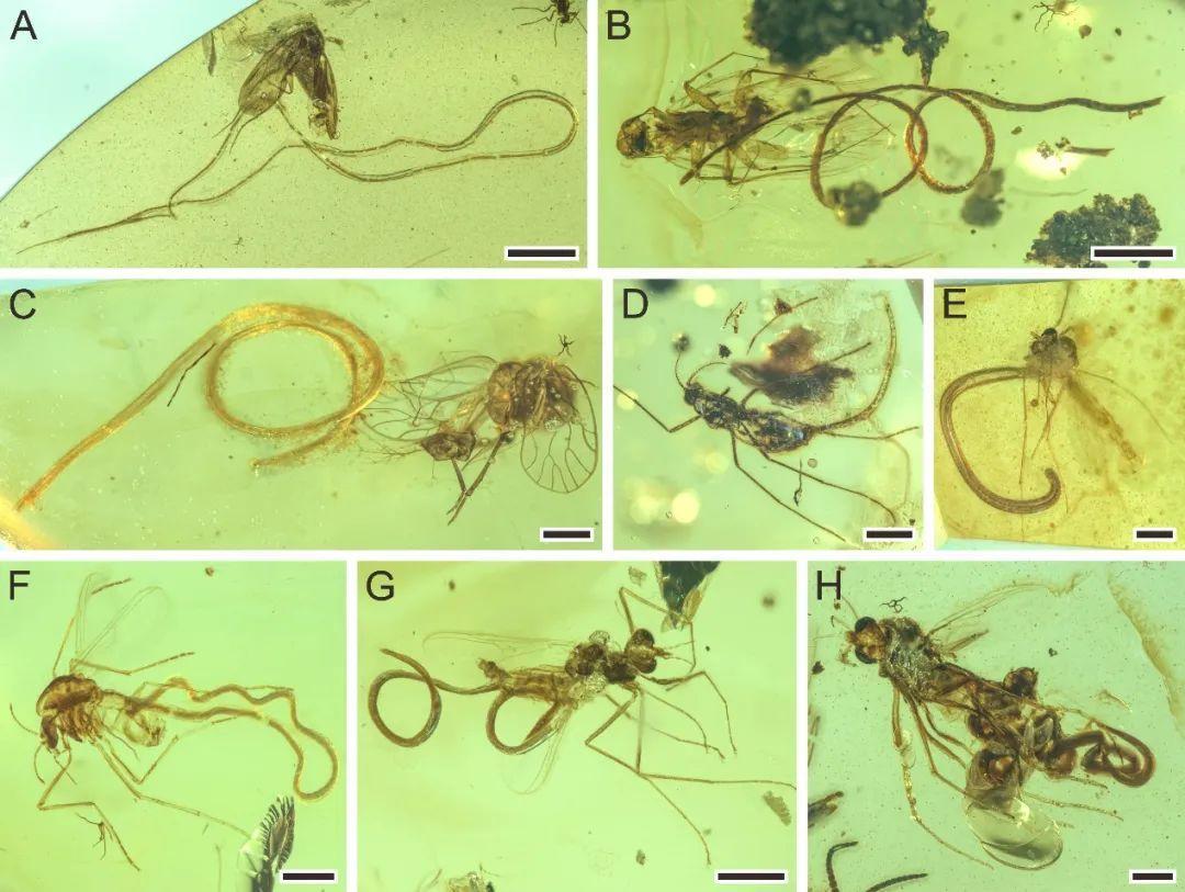 [1]Luo Cihang, Poinar G.O., Xu Chunpeng, Zhuo De, Jarzembowski E.A., Wang Bo, 2023. Widespread mermithid nematode parasitism of Cretaceous insects. eLife 12, e86283. https://doi.org/10.7554/eLife.86283