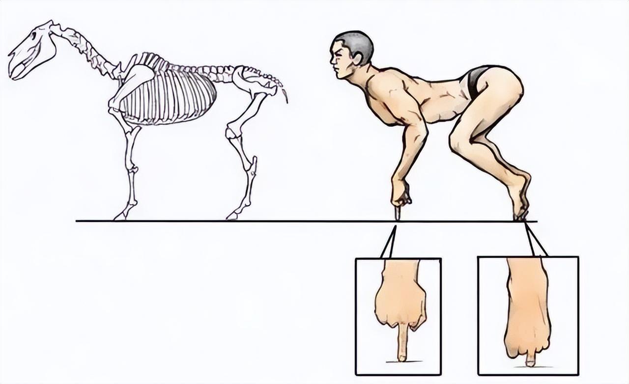 站在人的角度看馬腿,外表看似用腳走路,實際上馬是趾尖支撐,這位大佬給的圖示一目瞭然!