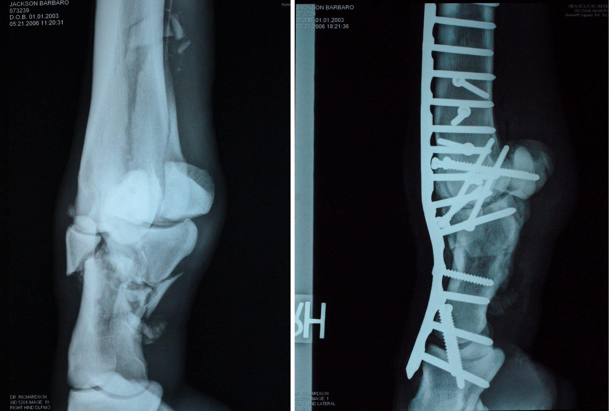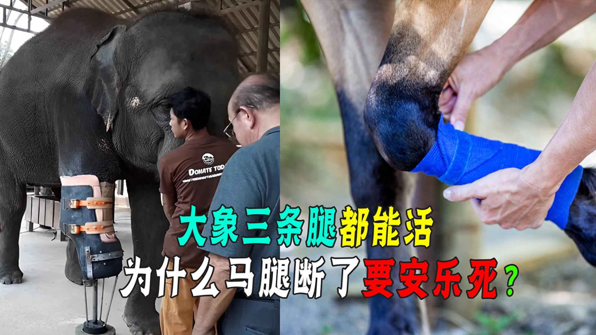 體型這麼大又不像貓狗之類的一樣跳着走,兩三噸的重量全壓在了三條腿上,野外肯定成爲食肉動物的自助餐,多虧了當地亞洲象救治醫院,給它裝上了假肢!三腿變四肢熟悉的感覺回來了,輪到同樣四條腿的馬,可沒那麼好運了,美國著名賽馬巴巴羅治了倆月的骨折,最後死於治了半年都治不好一直復發的蹄葉炎,