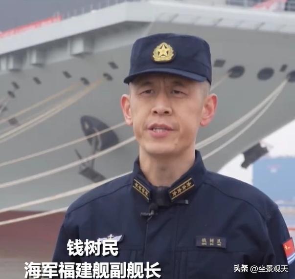 作爲中國唯一一艘大型航母,福建艦的曝光還是非常多的,2023年1月的時候,中央電視臺還採訪到了福建艦的副艦長錢樹民大校。