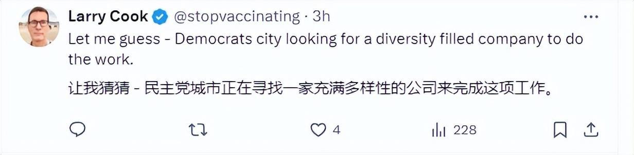 但是美國網友並不買賬,有人表示,馬里蘭州是藍州,是民主黨的基本盤之一,民主黨一定會找一家充滿多樣性的公司來完成這項工作,也就是僱傭黑人、跨性別者、LGTB+羣體的公司。