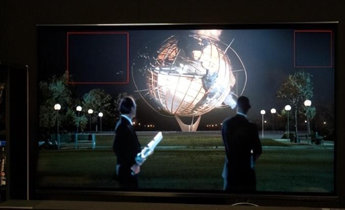 另外,在這個橙子畫面中,可以明顯的看到,這臺電視是有背光分區的。但即使是有背光分區,控光能力不好,區域的亮度同樣不能被壓下來,導致出現了色塊,讓畫面大打折扣。