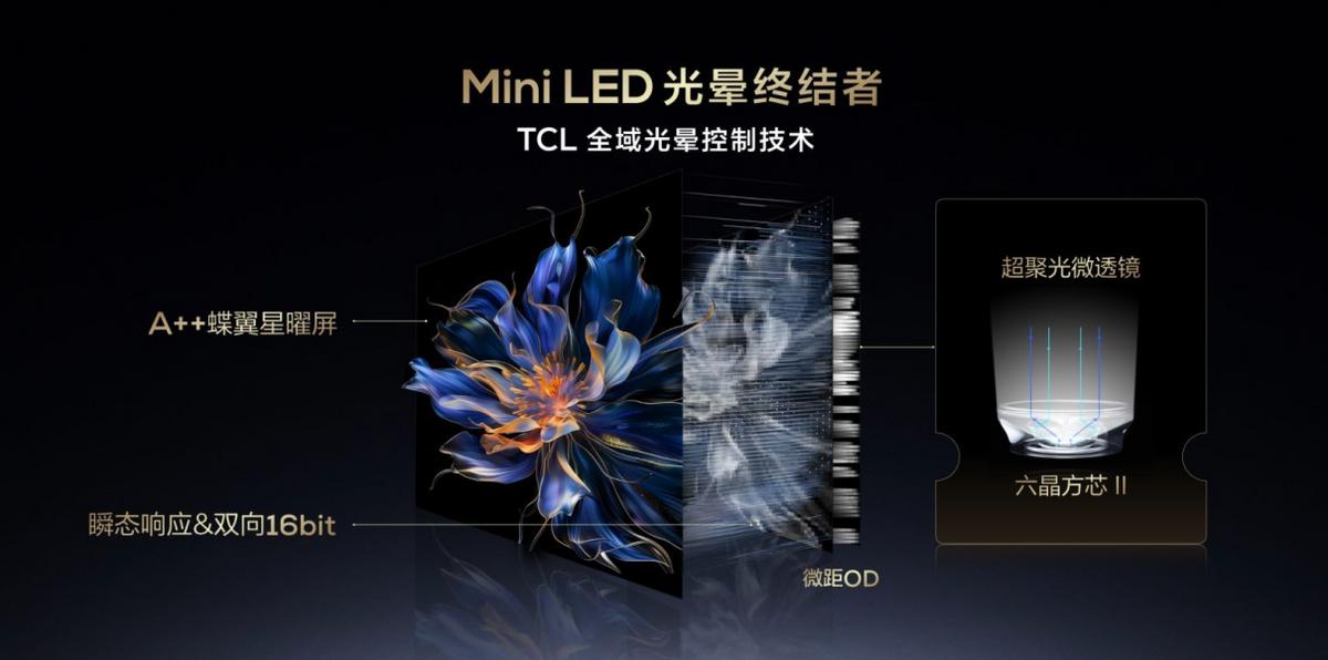 針對Mini LED電視光暈這個問題,前面提到Mini LED先行者TCL,便找到了完美的解決方案——TCL全域光暈控制技術。