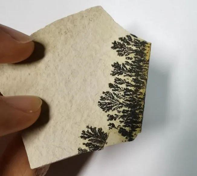 樹枝石的岩石表面有類似側柏樹枝狀薄膜或苔蘚、藻類等低等植物的印痕,但非植物遺體。其成因是溶解了鐵、錳等礦物質的地下水流入岩石的裂隙後,壓力降低,溶解的礦物質沉澱在岩石表層,染色所致。