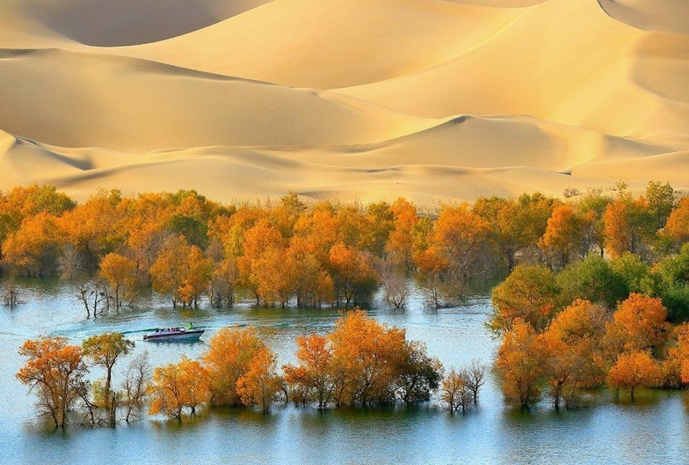 除了胡楊樹之外,我們可能在原本塔克拉瑪干沙漠所在的地方,看到更多的綠色植被。