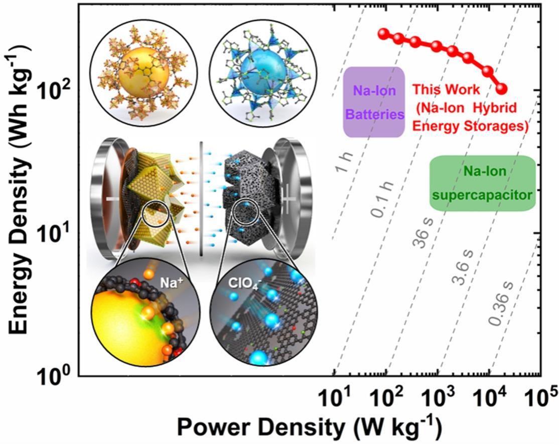 這項研究來自韓國科學技術院,並不是完全的鈉離子電池,而是電池和電容結合的混合儲能系統。我們都知道電池能量密度大,充放電慢,而電容能量密度低,但充放電速率極快,理論上把兩者結合起來,確實可以取長補短,提升系統的能量密度和充放電速率。