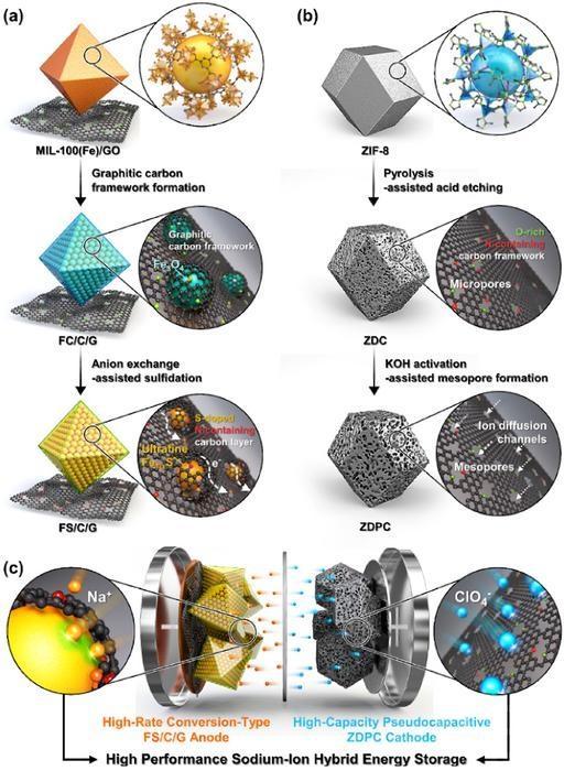 具體來說,這種電池利用微細的硫化鐵顆粒嵌入到富含硫的碳/石墨烯網絡中,形成高容量、高充電速率的負極材料,可以實現快速的離子傳輸及輕鬆的電子傳導;正極則是利用合成的沸石咪唑酯框架衍生多孔碳(ZDPC),具有高容量和高速離子傳輸能力,可以支持電池快速且頻繁地充放電。