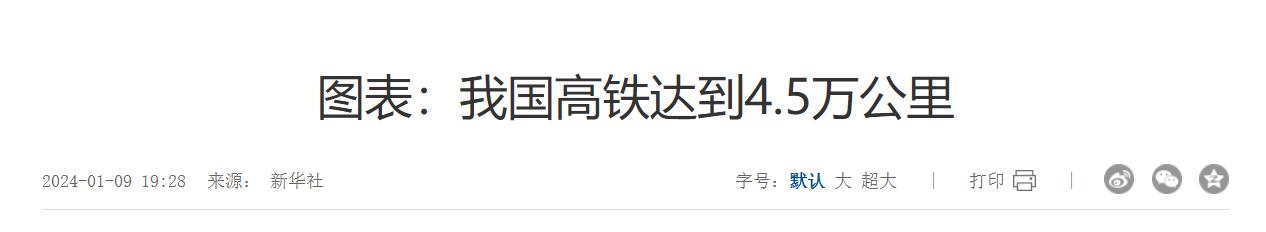 在軌道交通領域,高鐵總里程達到4.5萬公里,同時吊打該領域第二名到最後一名總和;