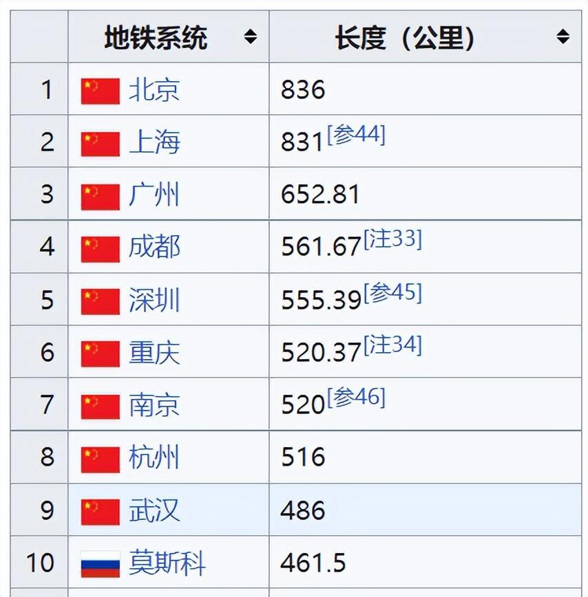 截止到2023年底,全球各城市地鐵里程排名前10中,除第10名的莫斯科之外,1-9名都是中國城市。全球只有61個城市,地鐵總里程超過100公里,中國佔近一半。