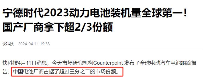 在《中國製造2025》中,新能源是非常重要的一環,而我們直接就是超額完成。2023年,中國佔世界電動車份額63.5%;